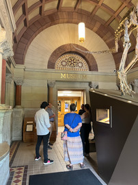 Ohio members of AppSciComm and guests from The Ohio State University met for an in-person visit to Ohio State’s Orton Geological Museum on August 15, 2024. The tour, led by museum director Dr. Loren Babcock, covered the history of Orton Hall, one of the oldest buildings on Ohio State’s campus, as well as many of the museum’s foundational exhibits such as Megalonyx, a giant ground sloth from North America, and Cryolophosaurus from Antarctica, which was discovered by an Ohio State professor.
